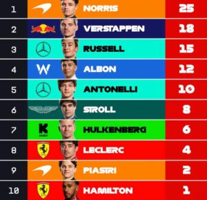 Na madrugada de sábado (22) houve a prova da Sprint e Hamilton ganha Piastri em segunda posição e Verstappen em Terceiro. Logo após a corrida da Sprint os pilotos fazem